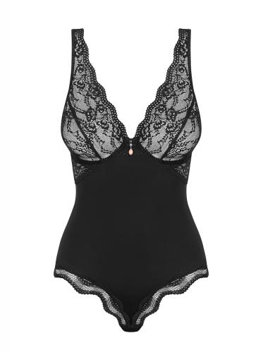 Een elegante stringbody van Obsessive met doorzichtige kanten cups. In de cups zijn beugels verwerkt en de bandjes zijn verstelbaar. De body is van comfortabel materiaal en sluit hierdoor perfect aan zodat jouw lichaamsvormen mooi uitkomen.